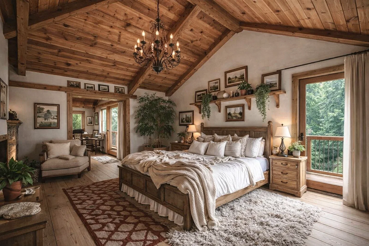 • Lighting for Ambiance: Avoid harsh overhead lights. Instead, create a pool of warm, inviting light with a mix of sources. A statement wrought-iron or wooden chandelier, paired with wooden bedside lamps with fabric shades, is perfect. Always include candlelight (real or LED) for ultimate coziness.